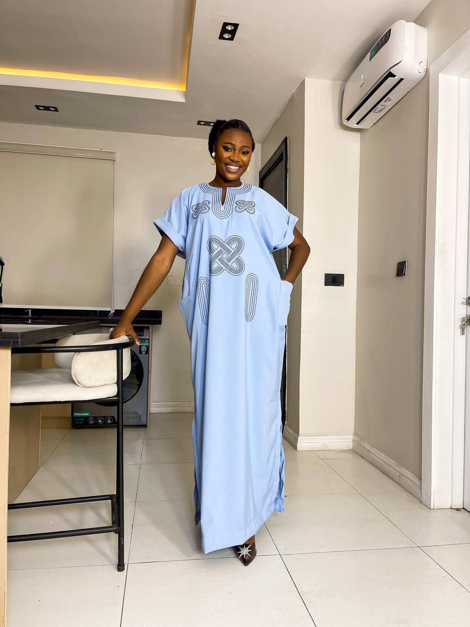 - Long Dashiki dress made with fine crepe and Grade A Swarovski stones.