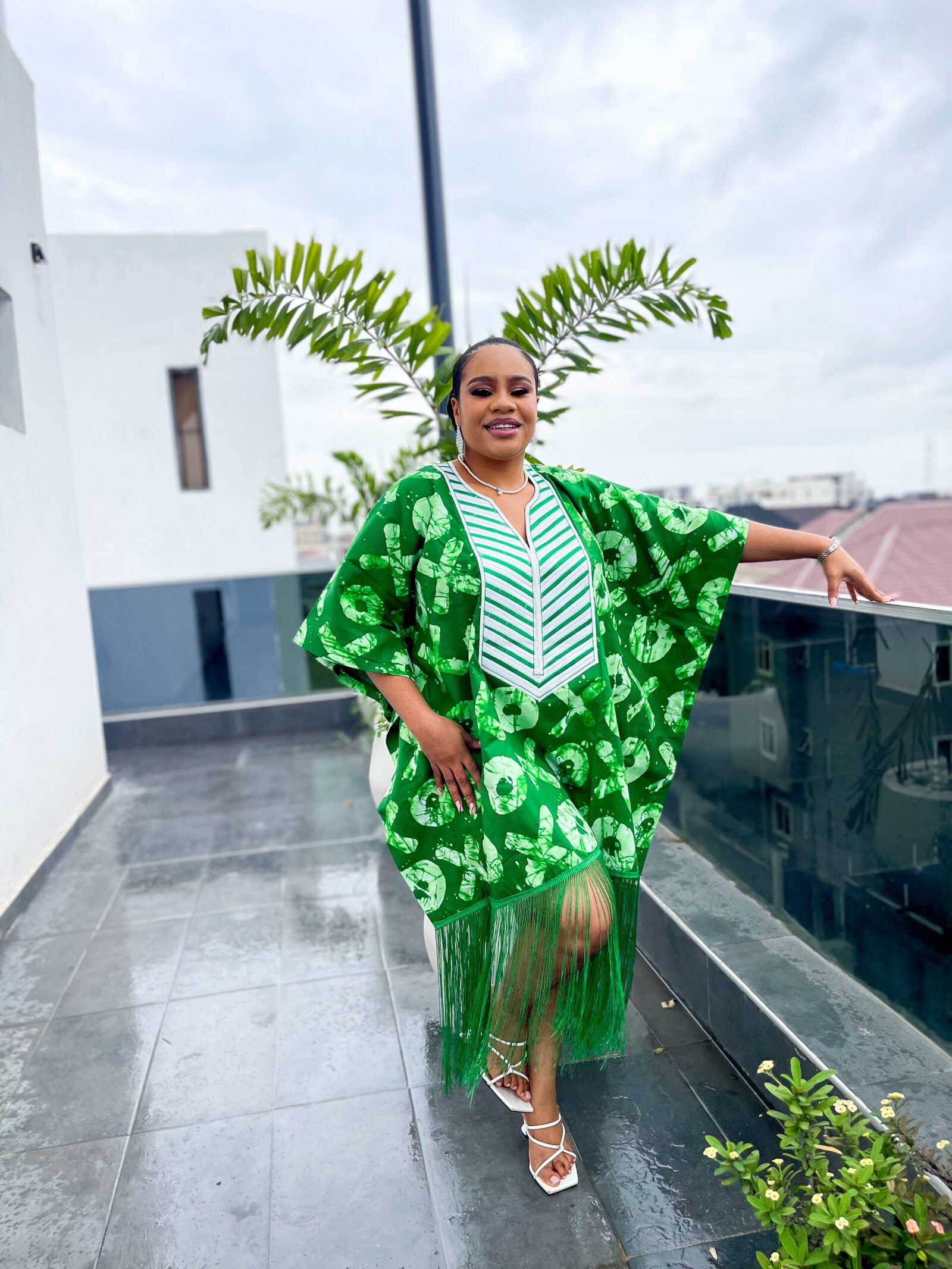 - Okoya dress is made from 100% cotton fabric and designed with long fringes